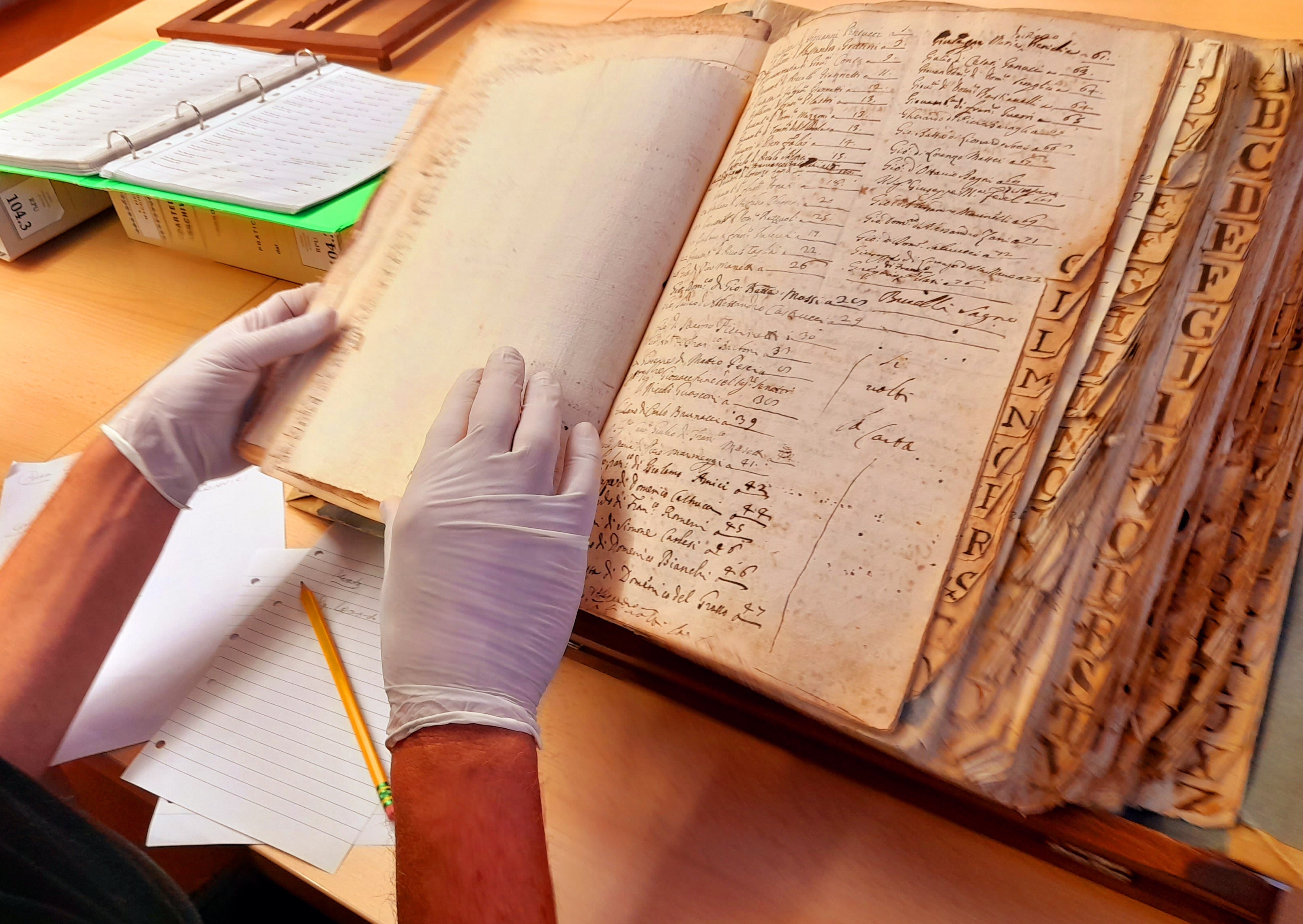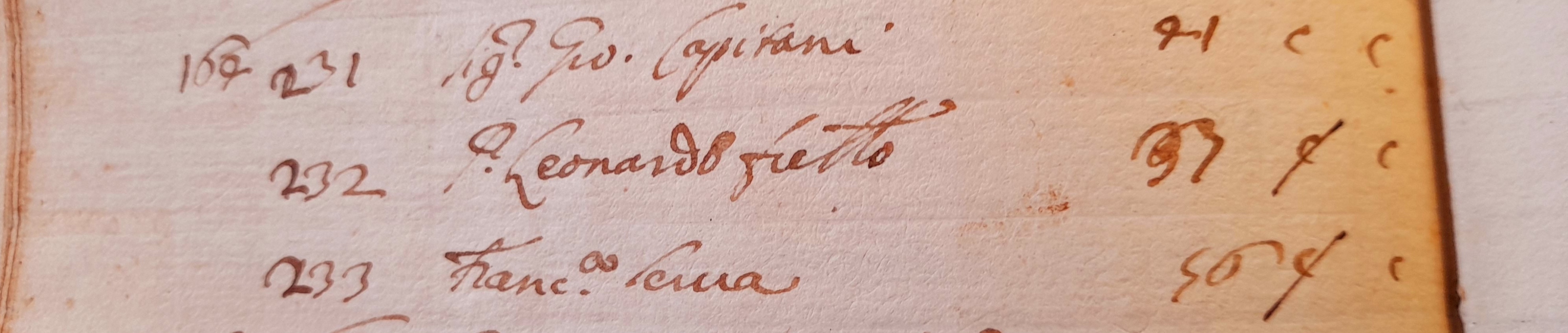 Keine Blankokarten für Herrn Stille (Januar 2023 zurück)Ein Sponsor ermöglichte uns den Erwerb dieser Postkarte aus dem Jahr 1893. Adressiert ist sie an Herrn Eduard Stille in Hannover. ![]() Sie wurde versendet von der auf der Gelben Mühle ansässigen Fa. Benrath & Franck, dessen Fertigungsspektrum noch weitestgehend im Dunkeln liegt. Aber durch diese Postkarten wissen wir nun, was die Firma NICHT produzierte. Offenbar war dieser Herr Stille in Hannover so bekannt, dass keine weiteren Adressdaten erforderlich waren. Er war Besitzer einer lithographischen Kunstanstalt, Buch-, Stein- und Lichtdruckerei und fertigte u.a. auch Spielkarten. ![]() Der Text lautet: Gelbe Mühle, den 7. Dez. 1893 Die Bücher der Seelen (Januar 2023, von Manfred Lenzen - Fortsetzung von "Auf nach Florenz!" - zurück)Die italienischen Status Animarum (wörtlich: „Seelenzustände“) waren Verzeichnisse, die nach dem Rituale Romanum (dem liturgischen Buch der Feiern nach dem Römischen Ritus der katholischen Kirche) von 1614 regelmäßig von Pfarrern erstellt werden mussten: Sie erfassten persönliche und religiöse Daten der Gemeindemitglieder sowie deren Berufe und Besitztümer. Letztere Daten waren nützlich für die Bestimmung des Zehnten (Zehntel des Vermögens), der an die Gemeinde zu zahlen war. Daher können die Status Animarum als eine Art organisierte Volkszählung betrachtet werden. Diese Bücher der Seelen wurden von den Pfarrern in der Regel anlässlich des Ostersegens erstellt: Sie registrierten daher die Gemeindemitglieder nach Familienkernen gemäß dem Ablauf der Besuche. Im Allgemeinen wurden der Vor- und Nachname, das Alter und der Status jedes Gemeindemitglieds in Bezug auf die Sakramente der Beichte, der Kommunion und der Firmung angegeben (diese wurden durch Anbringen eines grafischen Zeichens „+“ oder einer Abkürzung – C. oder Conf., Com., Ch.) angegeben. Heute werden Stati oft in den einschlägigen Pfarrarchiven, sofern vorhanden, gemeinsam mit den Pfarrbüchern (Taufbücher, Hochzeitsbücher, Verstorbenenbücher etc.) aufbewahrt. Im Fall von aufgelösten oder zusammengelegten Pfarreien wird ihre Aufbewahrung den Diözesanarchiven anvertraut. Dies ist auch der Fall in Florenz, wo das das Archivio Storico Arcivescovile - das Erzbischöfliche Historische Archiv - die Seelenbücher aufbewahrt. Manchmal sind es magere Listen mit Namen und Nummern, aber wenn sie besonders genau sind, bergen die Seelenbücher wichtige Informationen: die Namen der Straßen und Stadtteile, den Besitz oder Anmietung des Hauses, die Arbeitsbedingungen des Familienoberhauptes, die Anwesenheit von Dienstboten und Diener usw. Sie sind daher eine sehr wichtige Quelle für demografische und soziale Studien und für die genealogische Forschung. Aus genealogischer Sicht erweist sich der Status Animarum als wesentliche Quelle zur Identifizierung der verschiedenen Kinder eines einzigen Familienoberhauptes, das fast immer zuerst genannt wurde. In Italien müssen sich genealogische Recherchen zu nichtadligen Familien im Allgemeinen auf die ältesten verfügbaren Seelenbücher beschränken. ![]() ![]() Der Einband (links) und die Titelseite (rechts) der Descrizione dell'Anime der Pfarrei San Pier Maggiore in Florenz. In Florenz habe ich mich in den dortigen Büchern der Seelen auf die Suche nach unserem Giovanni Capitani gemacht. Hier finden wir zu den Namen der Familien die folgenden Spalten: Aie, Comne und Comti. Diese Spalten bedeuten Anime – wörtlich „Seelen“, die Anzahl der Personen; Comunione – die Anzahl der Familienmitglieder die die Heilige Kommunion zur Ostermesse empfangen dürfen; und Comunicanti – die Anzahl der Familienmitglieder die die Heilige Kommunion zur Ostermesse des jeweiligen Jahres (hier 1673) tatsächlich empfangen haben. Der Auszug im Bild unten zeigt den oberen Teil der Liste für die Florenzer Straße Via della Colonna, die auch heute noch existiert. ![]() Hier finden wir zum Beispiel die Familie des Ottaviano de Medici, 36 Jahre alt, wohnhaft mit seiner Frau (Consorte) Lucrezia, 30 Jahre alt, im Haus Nr.145 in der Via Borgo Pinti, mit 12 Familienmitgliedern, seinen Kindern (0 bis 10 Jahre alt, bezeichnet mit Sig: und Sig:ra), und zwei Mägden (serva) Anna Maria (25) und Maria (17). ![]() Tatsächlich taucht ein Giovanni Capitani im Seelenbuch von 1669 auf! Der Zusatz di Neri identifiziert seinen Vater, Neri. Giovanni erscheint hier als das Oberhaupt einer Familieneinheit mit 3 Mitgliedern, die alle zur Heiligen Kommunion berechtigt sind, und die alle an der Heiligen Kommunion der Ostermesse 1669 teilgenommen haben. ![]() ![]() Die Vorfahrenschaft des Giovanni di Neri Capitani ist dokumentiert in den Carte Pucci, einer Sammlung von Stammbäumen florentinischer Adelsfamilien des 17. Jahrhunderts, aufbewahrt im Archivio di Stato di Firenze (Inventar No. 263). Auf einer schönen Ahnentafel die bis zum Jahr 1309 zurückreicht (!) finden wir Giovanni und seinen Bruder Leonardo (rechts unten). Man beachte die Vermerke bei Giovanni: „vivé 1720“ und „ultimo [...] famiglia“; laut dieser Quelle ist er also der letzte überlebende Vertreter des Mannesstamms - kann also nicht der Etzweiler Johannes sein. ![]() Blatt No. 2 der Akte 16 in Schachtel IV der Carte Pucci, aufbewahrt im Archivio di Stato di Firenze (Inventar No. 263). Ob „unser“ Giovanni Capitani mit Giovanni di Neri verwandt ist, oder sich sonst in den Büchern der Seelen noch auffinden lässt? Mehr dazu später.