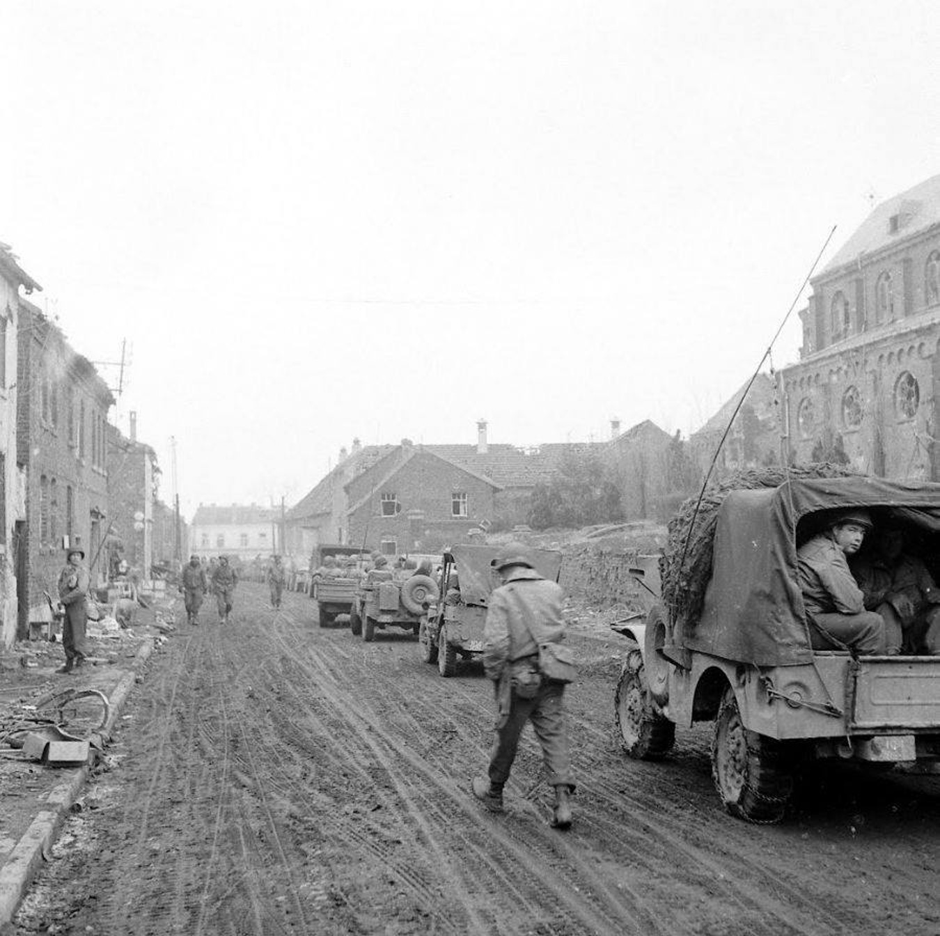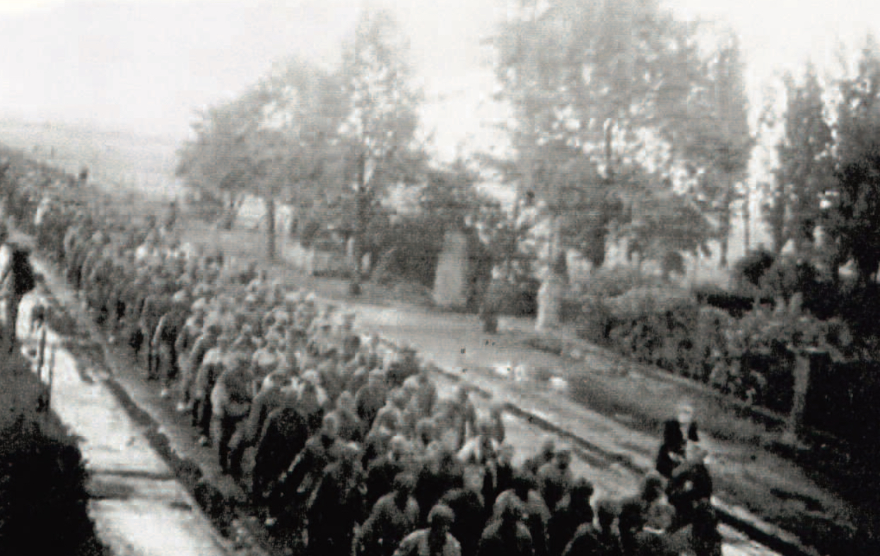 Eine Evakuierung - zwei Perspektiven (November 2022, von Manfred Lenzen - zurück)Am 19. November 1944, drei Tage nach dem verheerenden Luftangriff auf Düren, packt Gertrud Schnitzler aus Mariaweiler, Gürzenicher Str. 21, 37 Jahre alt, ihre beiden Kinder Gerda (13) und Heinz (7), und die notwendigste Habe in einen Heuwagen, und macht sich zur Evakuierung auf den Weg zum Dürener Bahnhof. Ich interviewte als Kind meine Großmutter Gertrud Schnitzler; hier sind ihre Erzählungen: "16.11.1944, begann die Bombardierung Dürens. Fliegeralarm - Keller schlafen. Flieger kamen meist nachts um 12. Flak zwischen Echtz und Mariaweiler. Tote nach Angriff auf Friedhof in Mariaweiler. 19.11.44 Evakuierung mit Heuwagen - kaputt, Eisenschubkarre weiter mit ganzer Habe, immer in Gräben unter Beschuß, durch Düren unter Beschuß, v. Merzenich weiter nach Buir, [...] Ganzes Dorf wurde evakuiert wie ein Trek, alles in den Zug rein was ging. Zug machte Irrfahrt, weil Frontverlauf unklar, Deutsche vollkommen aufgelöst. [...] 1 1/2 Tage Zug bis nach Syke bei Bremen - 8 Monate dort, bis 24.8.1945. Manche gingen früher manche später, nach dem Zurückkommen Streit um persönl. Habe. In Syke Vormarsch v. Ami u. Briten, Deutschen nur noch auf der Flucht. Kleider aus Bettlaken. Essen b. Bauer gegen Bezahlung. [Alliierte] Soldaten konnten teilw. Deutsch."