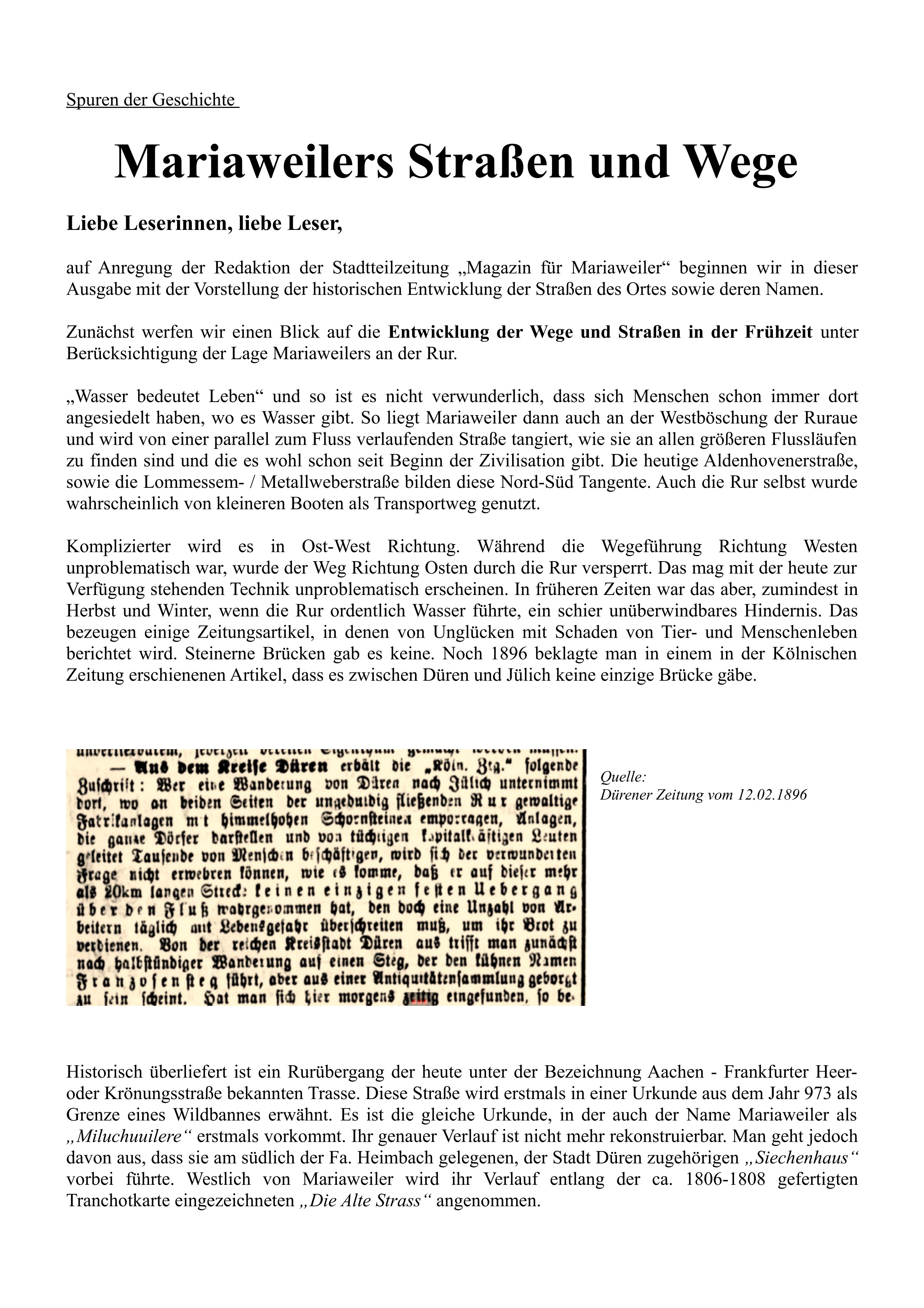 AKTUELL - Mariaweiler Straßen in der Stadtteilzeitung: