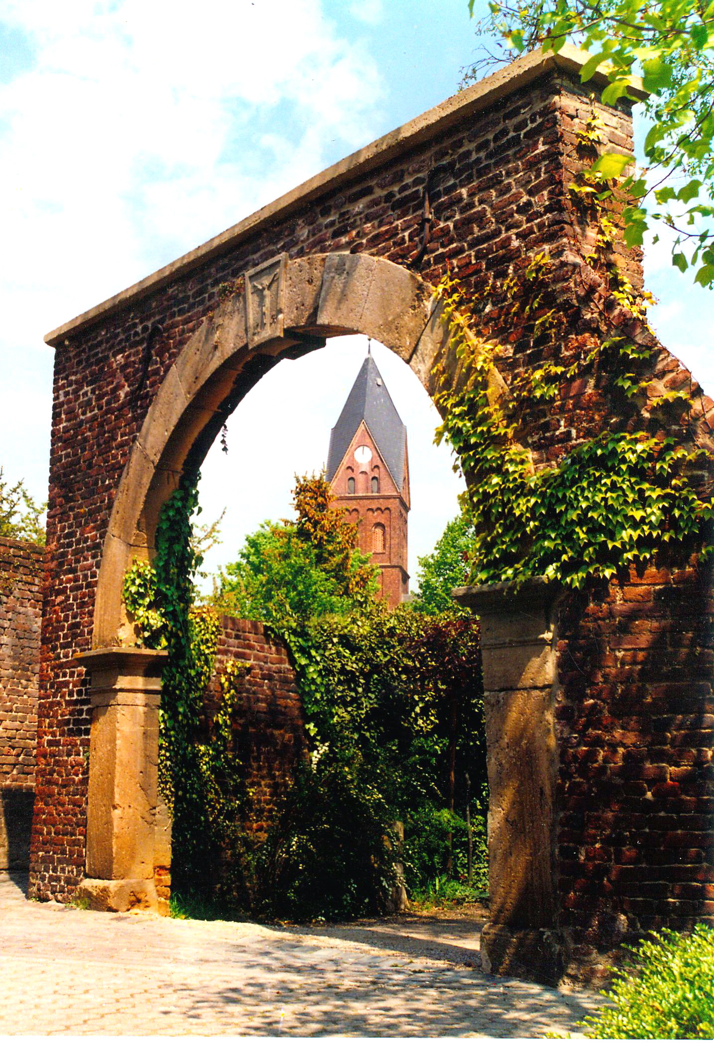 Der Torbogen in Mariaweiler Der Torbogen in Mariaweiler ist eines der letzten sichtbaren Überreste des ehemaligen Klosters Nazareth und gilt als eines der prägnantesten Baudenkmäler des Ortes. Er gehört zur alten Umfassungsmauer, die einst das Klosterareal begrenzte und den klösterlichen Bezirk vom weltlichen Raum trennte. Der aus rötlichem Backstein und hellem Sandstein gefertigte Bogen ist von Efeu überwachsen und öffnet sich heute malerisch in Richtung der Kirche von Mariaweiler, deren Turm im Hintergrund sichtbar ist. Auf seinem Schlussstein ist die Jahreszahl 1764 eingemeißelt, die auf eine Renovierung oder einen Neubau in der Spätbarockzeit hinweist. Das Kloster Nazareth, zu dem der Torbogen gehörte, hat eine lange und wechselvolle Geschichte. Seine Gründung lässt sich nicht exakt datieren, doch wird angenommen, dass die Anlage bereits um 1270 entstand. Die älteste gesicherte Erwähnung findet sich in einem Eintrag aus dem Jahr 1484, in dem das Kloster als bestehend genannt wird. Die dort lebenden Nonnen folgten zunächst der dritten Regel des heiligen Franziskus, der sogenannten Franziskanischen Bußregel. Später, ab etwa 1640, nahmen sie die Minoritenregel an und traten in geistliche Verbindung mit den Minoriten in Nideggen. Das Kloster war über Jahrhunderte ein bedeutender Bestandteil des religiösen und sozialen Lebens in Mariaweiler. Es lag an einer alten Heer-, Pilger- und Handelsstraße zwischen Köln und Aachen und profitierte so von seiner verkehrsgünstigen und zugleich geschützten Lage in der Nähe der Kirche und mehrerer Quellen, die der Versorgung dienten. Im 18. Jahrhundert erlebte das Kloster eine Blütezeit, in der verschiedene bauliche Verbesserungen vorgenommen wurden. 1752 entstand ein kombiniertes Back-, Brau- und Waschhaus, und wenige Jahre später wurde offenbar auch der Torbogen erneuert. Er diente als Haupteingang zum Klosterhof, zugleich als repräsentatives Zeichen des Wohlstands und der religiösen Würde der Gemeinschaft. Der Torbogen markierte die Schwelle zwischen dem sakralen und dem profanen Raum, ein Übergang, der in seiner architektonischen Form bewusst hervorgehoben wurde. Mit der Säkularisation im Jahr 1802 endete die Geschichte des Klosters. Die Anlage wurde aufgehoben, das Vermögen eingezogen, und viele Gebäude verfielen. 1813 erfolgte der Abriss der meisten Klostergebäude. Einige Gegenstände, etwa eine spätmittelalterliche Pietà, die Totenglocke und eine Orgel, wurden von der Pfarrkirche übernommen und so vor dem Verlust bewahrt. Bei späteren Bauarbeiten auf dem Gelände, insbesondere beim Bau eines neuen Pfarrhauses, wurden menschliche Skelette gefunden, vermutlich die sterblichen Überreste von Nonnen, die hier begraben worden waren. Im Laufe des 19. und frühen 20. Jahrhunderts veränderte sich das Erscheinungsbild des Geländes grundlegend. Um 1900 entstand auf dem ehemaligen Klosterareal eine Villa, die zeitweise als Sommerresidenz der Familie von Steffens diente. Der Torbogen, ein stiller Zeuge all dieser Veränderungen, blieb jedoch bestehen. Am 30. Dezember 1986 wurde er zusammen mit Teilen der alten Klostermauer in die Denkmalliste der Stadt Düren aufgenommen. Bis heute erkennt man an der Mauer Nischen, die vermutlich einst für einen Kreuzweg vorgesehen waren. Überlieferungen berichten zudem von einem angeblichen unterirdischen Gang, der das Kloster Nazareth mit dem weiter entfernten Kloster Schwarzenbroich verbunden haben soll. Für diese Erzählung gibt es jedoch keine archäologischen Belege. Heute ist der Torbogen nicht nur ein kulturhistorisches Denkmal, sondern auch ein identitätsstiftendes Symbol für Mariaweiler. Er erinnert an das religiöse, soziale und architektonische Erbe des Ortes und steht zugleich für die Verbindung zwischen Vergangenheit und Gegenwart. Dieses Motiv greift der Verein „Geschichte und Heimat Mariaweiler“ in seinem Logo auf. Der Bogen dient darin als Sinnbild für das Tor zur Geschichte, als Einladung, den Blick auf die Wurzeln des Ortes zu richten und zugleich den Übergang in die Zukunft zu gestalten. Das Logo stellt also nicht bloß eine stilisierte Darstellung dar, sondern trägt die Idee in sich, dass Geschichte ein lebendiger Zugang ist: durch den Torbogen hindurch, von der Erinnerung zur Gegenwart. So bleibt der Torbogen in Mariaweiler ein bedeutendes Wahrzeichen, ein Relikt aus klösterlicher Zeit, das die Jahrhunderte überdauert hat und heute die kulturelle Identität der Gemeinde auf eindrucksvolle Weise verkörpert. | ||